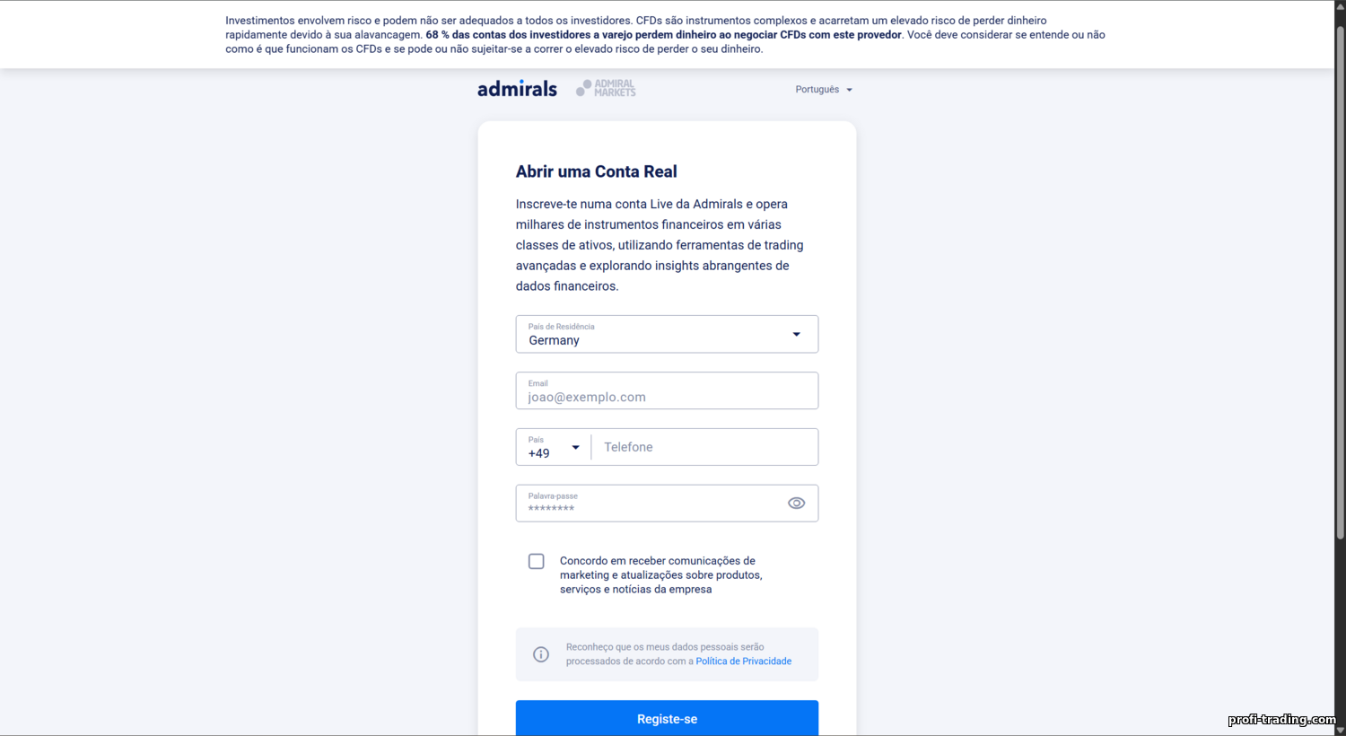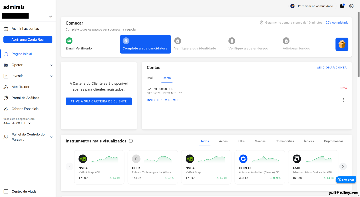 - Estatuto profissional. Traders qualificados (que cumpram critérios de experiência e capital) podem obter o estatuto Profissional em qualquer conta Admirals. Isto desbloqueia alavancagem mais alta (até 1:500) e certos privilégios, mas proteções de retalho (por exemplo, proteção de saldo negativo, esquemas de compensação) deixam de se aplicar. Adequado apenas a experientes.