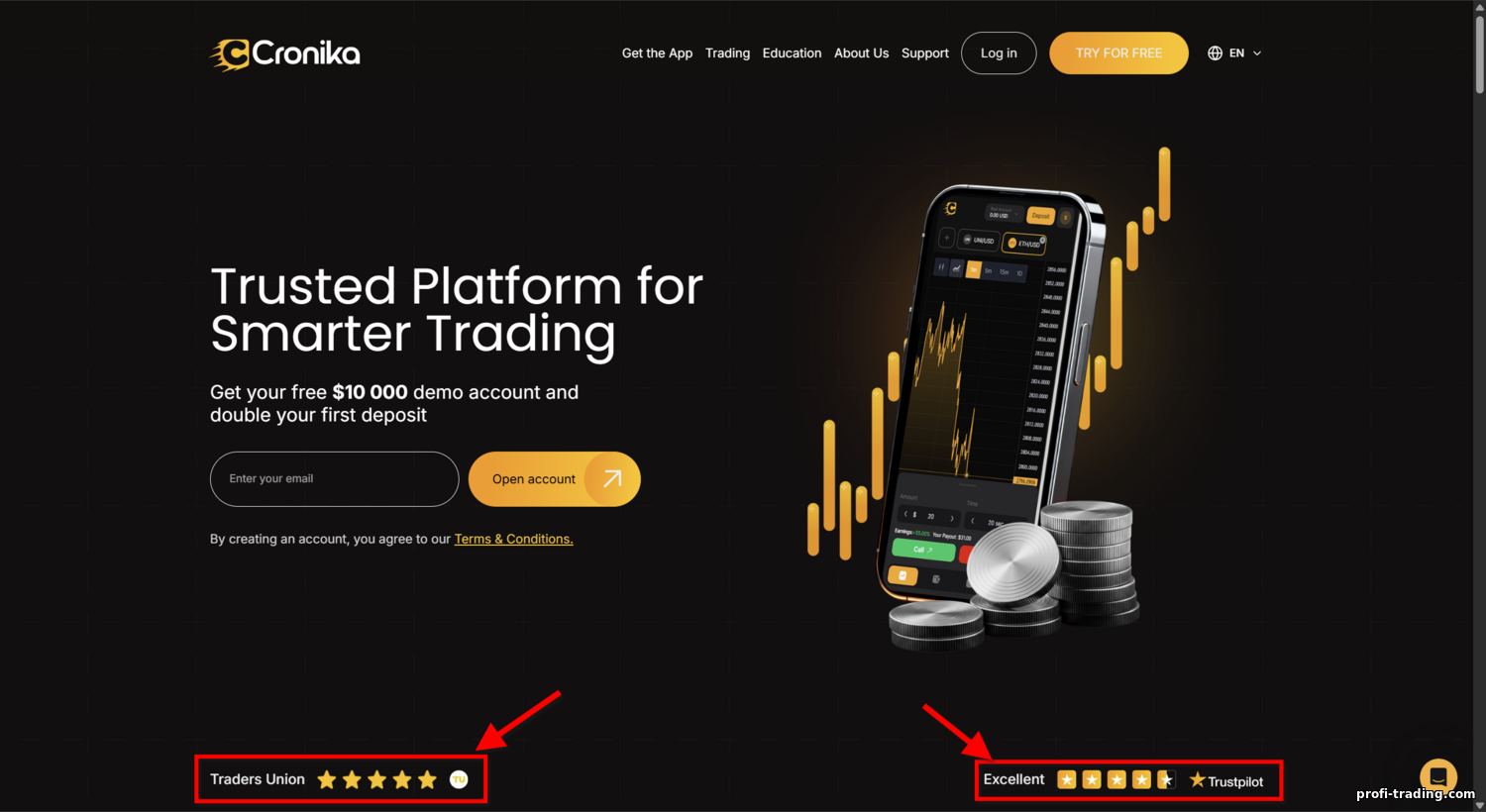 Além disso, o site da Cronika exibe uma alta avaliação do Traders Union, mas o Traders Union não tem uma análise publicada sobre a Cronika. Disso eu tiro uma conclusão simples: a corretora pode estar induzindo usuários ao sugerir endosso de um recurso “autoridade” que, na prática, não a cobre.