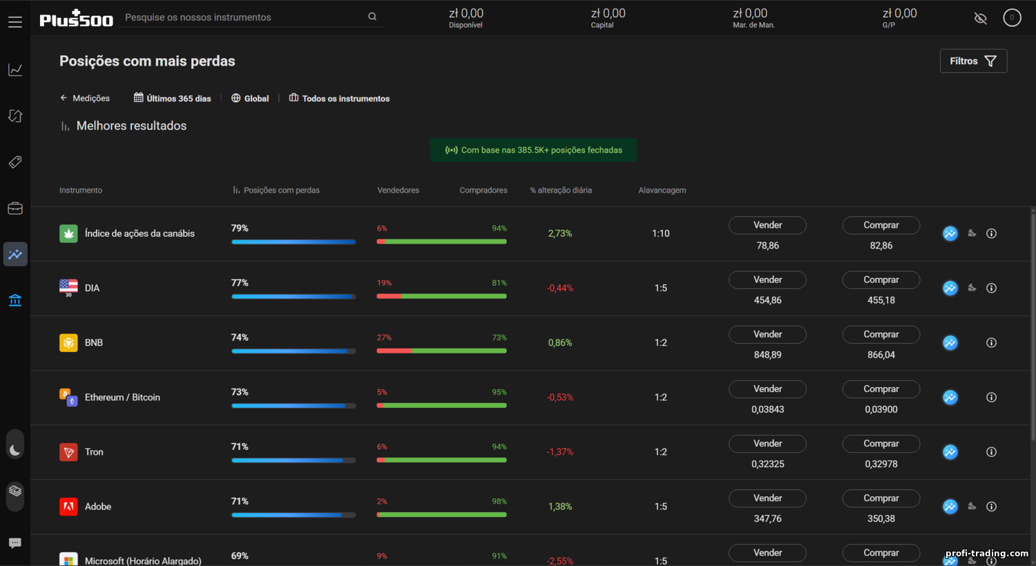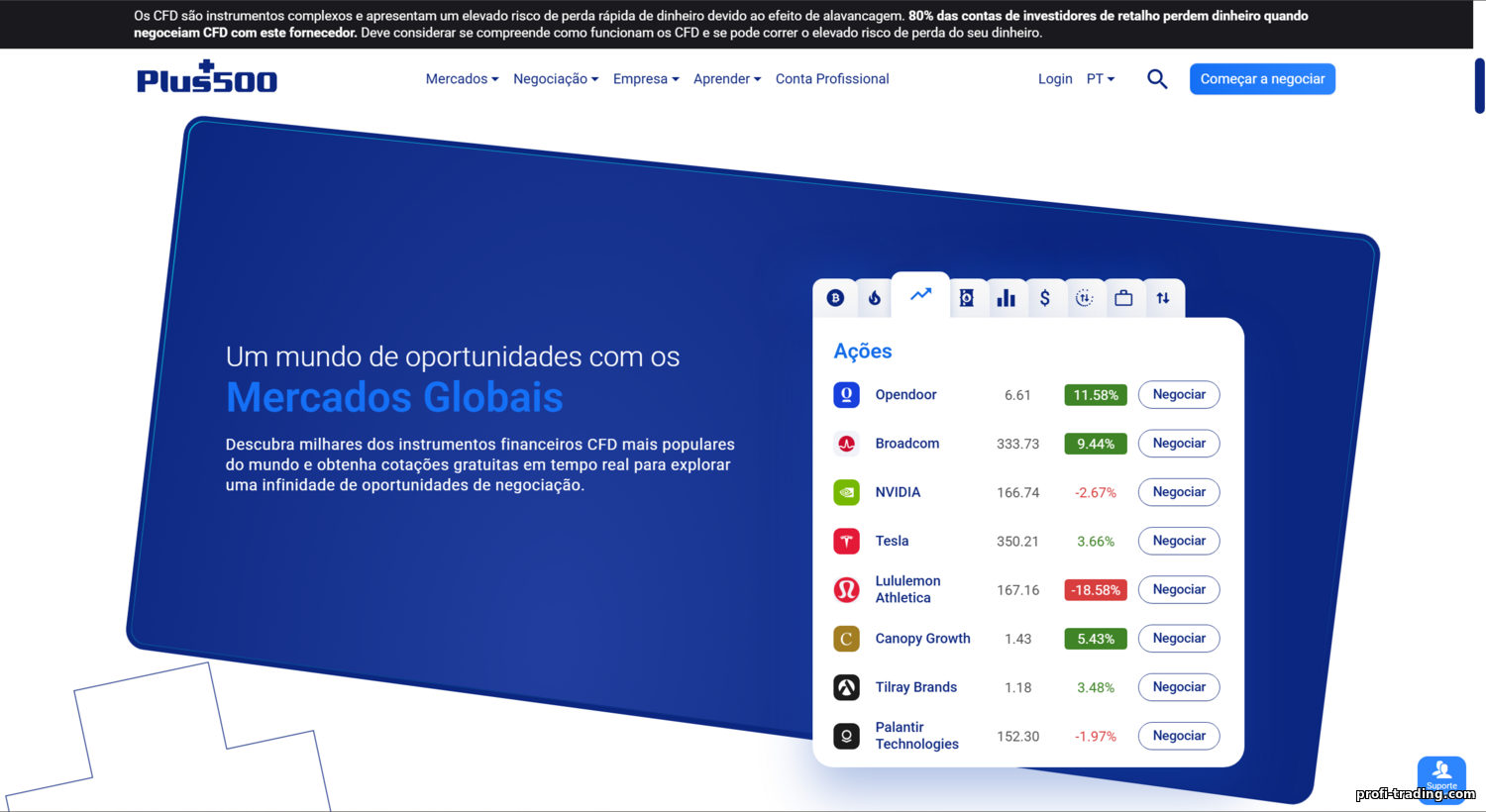 - Ampla seleção de instrumentos. A Plus500 oferece mais de 2.800 mercados: forex, ações, índices, commodities, criptomoedas, ETFs e até opções em CFD. Dá para diversificar sem trocar de plataforma.