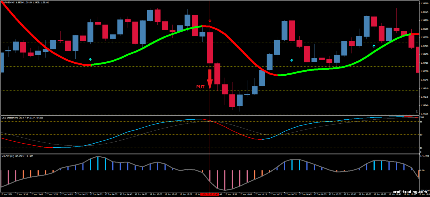 Estratégia para opções binárias, Forex e CFD - DSS Bressert com CCI NRP Scalping - uma estratégia baseada em três indicadores, permite capturar os melhores sinais de negociação para abrir negociações para cima e para baixo.