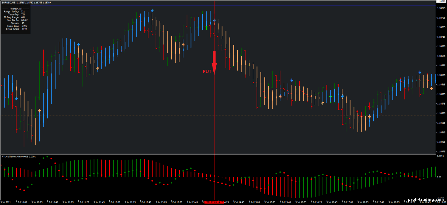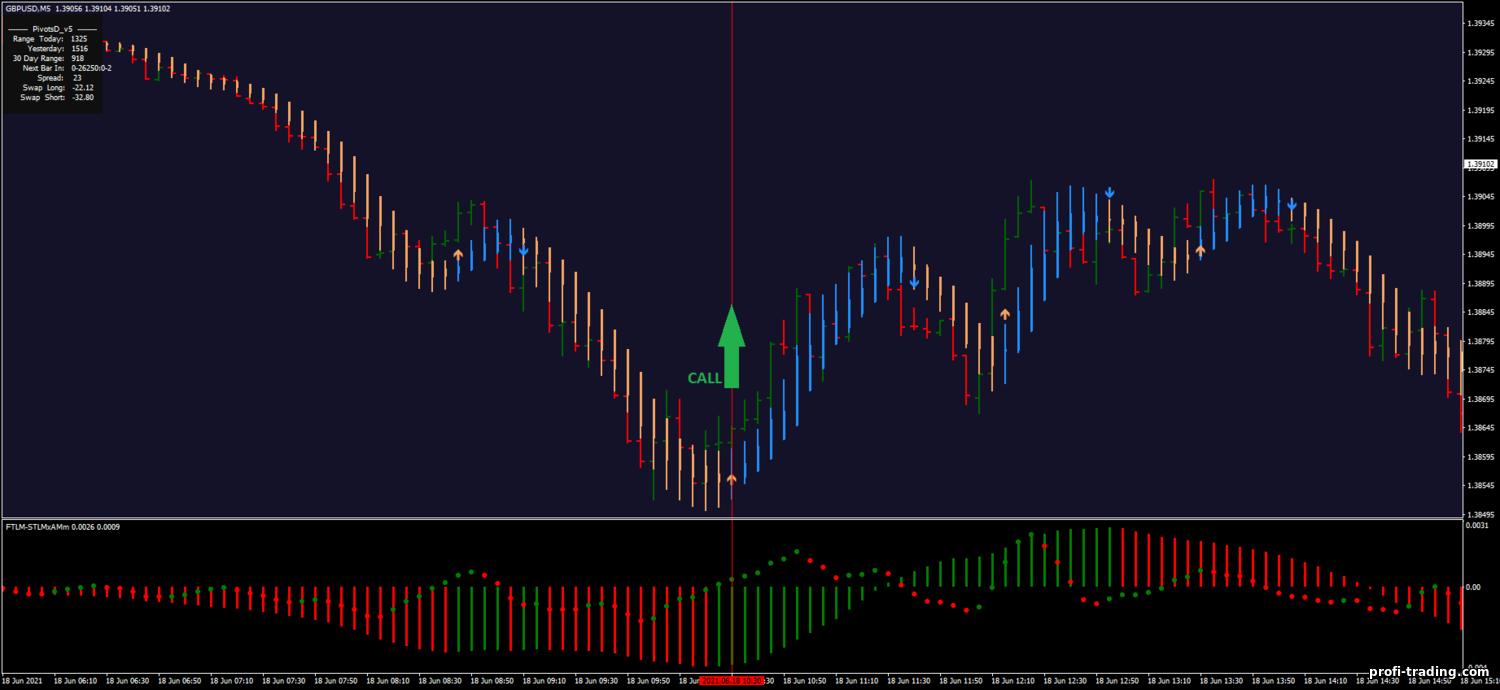 Estratégia para opções binárias, Forex e CFD - FTLM-STLM Scalping Evolution - uma estratégia que permite encontrar os melhores pontos de entrada usando um indicador de seta de nova geração e um filtro duplo para sinais falsos.