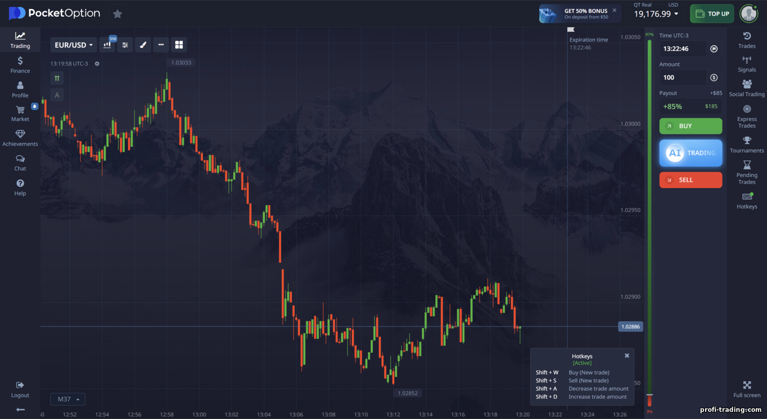 - Quais recursos únicos a Pocket Option oferece? — A plataforma suporta social trading completo: iniciantes podem acompanhar traders experientes e copiar operações com um clique. Também há torneios regulares em que participantes competem por lucro e podem ganhar prêmios valiosos. Novos clientes podem receber um bônus de 50% no primeiro depósito — por exemplo, depositar $100 e receber mais $50 em bônus. Claro, bônus têm requisitos de turnover, mas podem aumentar o capital inicial.