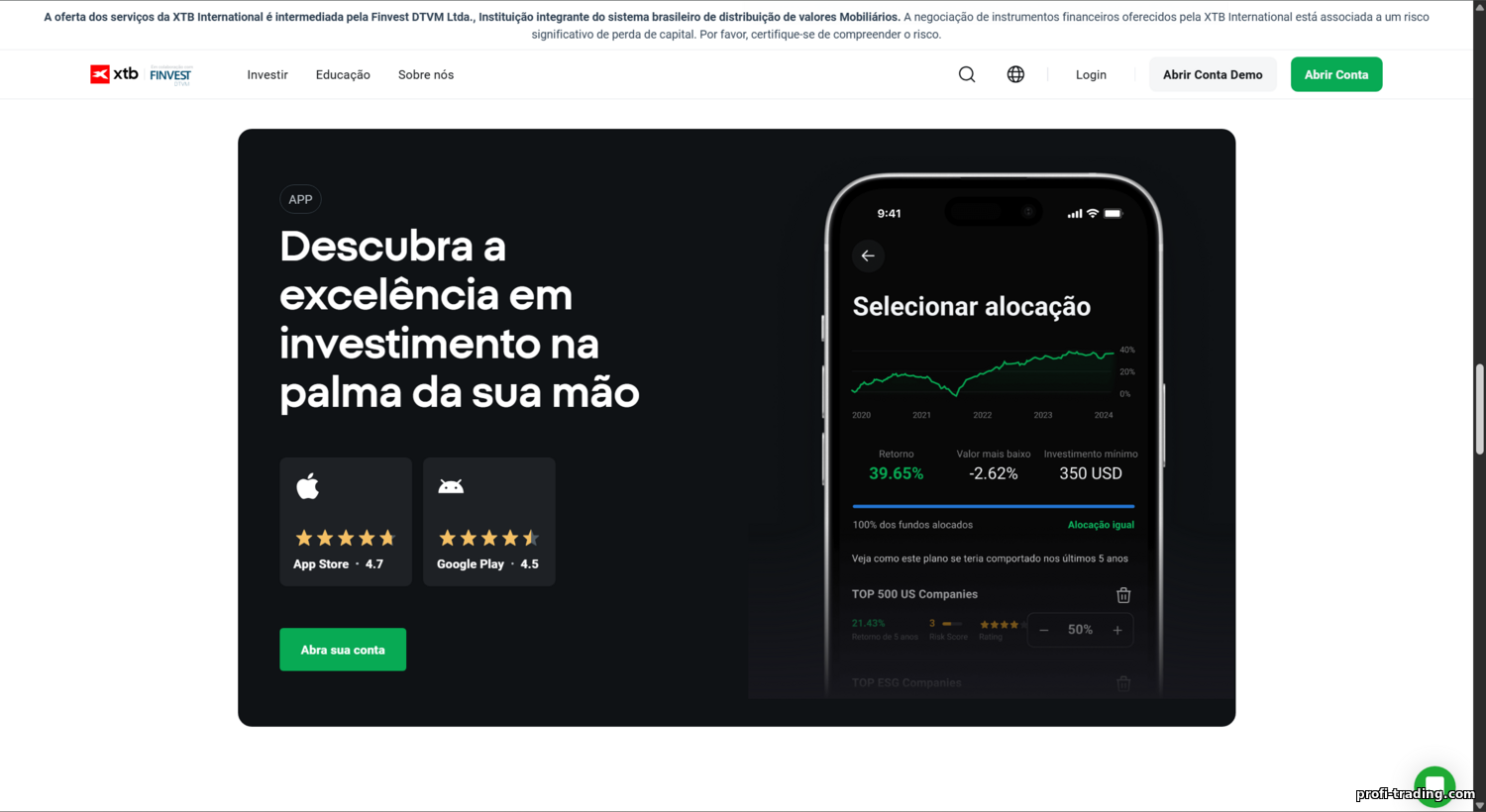 Os limiares são baixos. Em comparação com alguns concorrentes que exigem $200–500 para levantamentos gratuitos, a XTB é bastante flexível. Acima do limiar não há taxa da XTB.